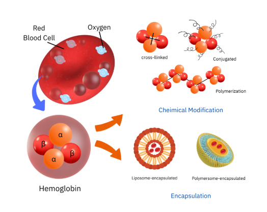 This approach focuses on isolating hemoglobin—the key protein responsible for transporting oxygen—from red blood cells and chemically modifying it to function freely in circulation.