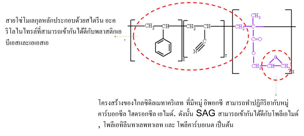 SAG is a copolymer between styrene acrylonitrile and glycidyl methacrylate.