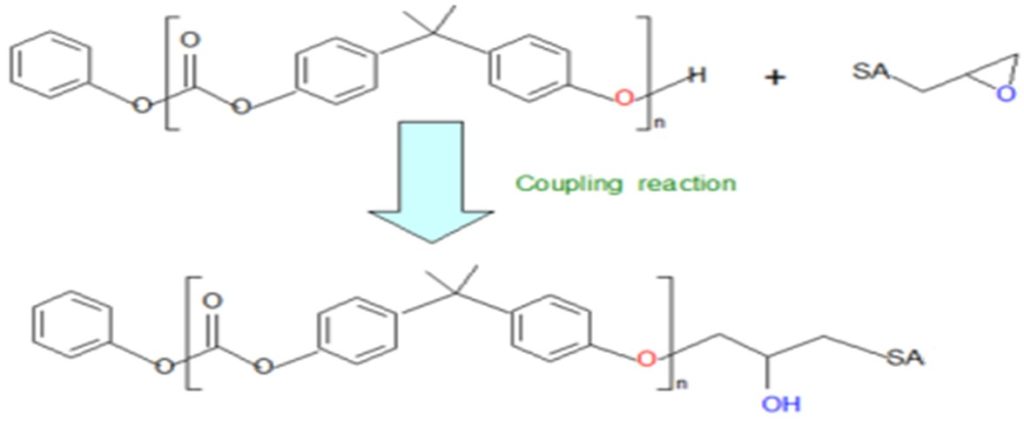 Example of the interaction mechanism between epoxy and hydroxyl groups at the chain end of the polyester molecular chain.